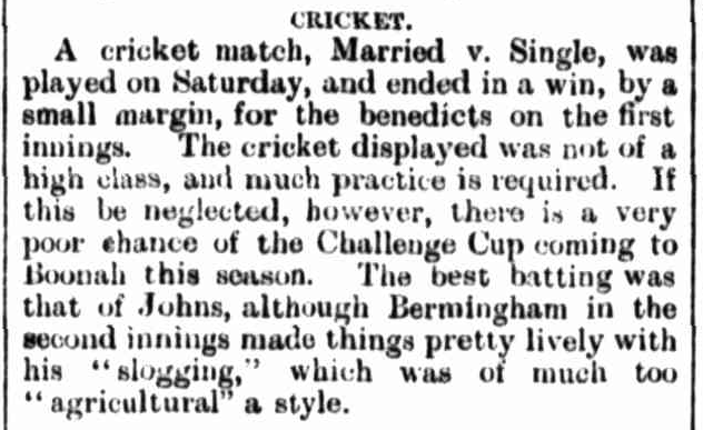 Ned was partial to playing social cricket, too, in fact, any sort of cricket. He loved the game. The above sports item was from the Queensland Times 18 Oct 1902. T20 cricket didn’t exist back then, but Ned’s hard-hitting slogging agricultural style of batting would have seen him excel as a limited-overs cricketer these days. I think the fact that it was a social game was lost on the journalist.