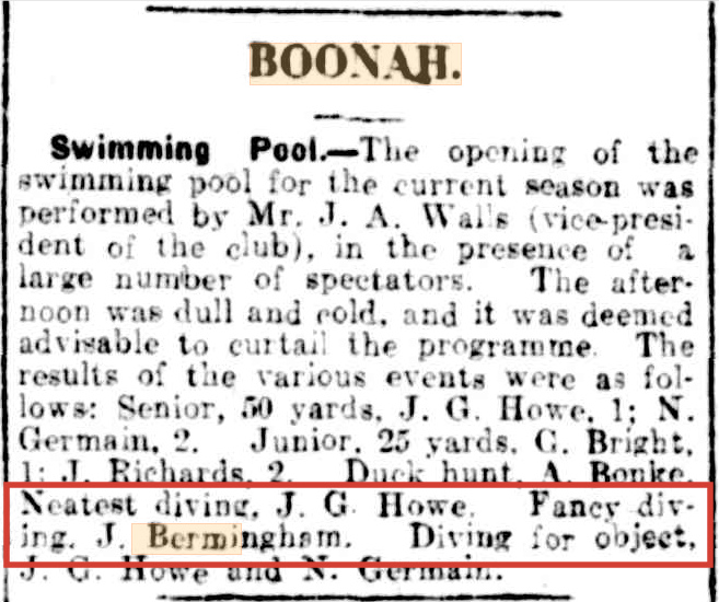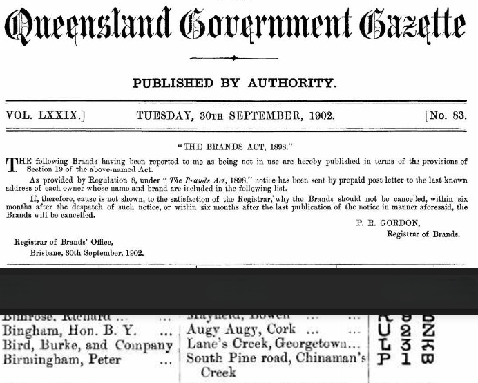 Ned Bermingham, at the age of 9, left South Pine and moved to Boonah in 1887. His half-brother, John Dunn Jnr (from Ellen’s first marriage to John Dunn Snr, 1832-1875), was appointed to be the first policeman stationed at Boonah. John Bowen Dunn served as the police officer at Boonah until 1895.