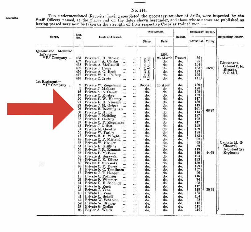 Ned Bermingham attended school in Boonah & would have completed his primary education at the age of 12, which was fairly common for that era of education in Queensland. Young men in the country regions typically worked on their families’ farms or businesses, pursued higher education, or learned a trade.