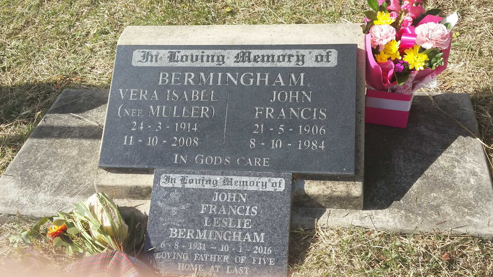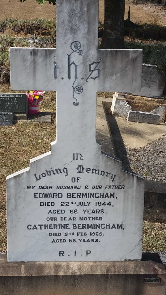 John Francis Bermingham died on October 8, 1984, at the age of 78. Both Jack and Vera have memorial headstones in the family plot at Boonah Cemetery.