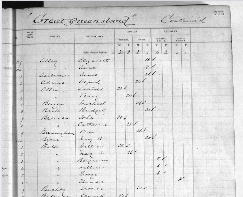My great-grandfather, Peter Bermingham, arrived in Maryborough, Queensland, on October 9, 1874, as a free settler aboard the ship Great Queensland, which departed from London.