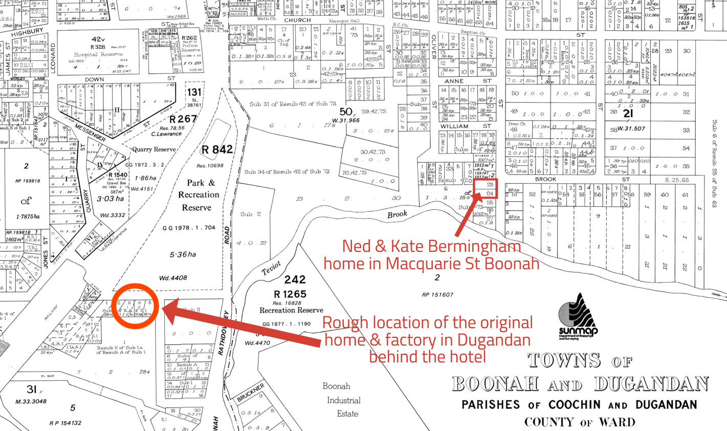 By 1910, when Ned took over the Dugandan Joinery Works from Charles Vincent, he and Kate, had recently welcomed their fourth of six children, Johanna Mary (Molly) Bermingham—their only daughter. According to historical records, the house in Dugandan, built c1892 by Charles Vincent, on part of land portion 31, was a two-storey residence situated on 2.5 acres of land. The ground floor featured a lounge, dining room, kitchen, laundry, storage area, and billiard room. The upper level included another kitchen, dining room, lounge or hallway, two double bedrooms, and a verandah.