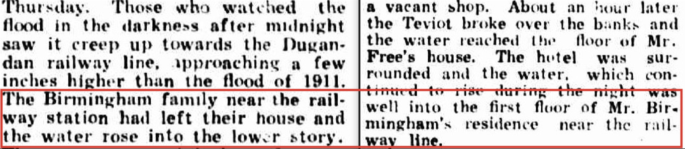The photograph below shows the family home around the time of the 1893 flood, well before Ned purchased the house and business from Charlie Vincent, when Teviot Brook had broken its banks.