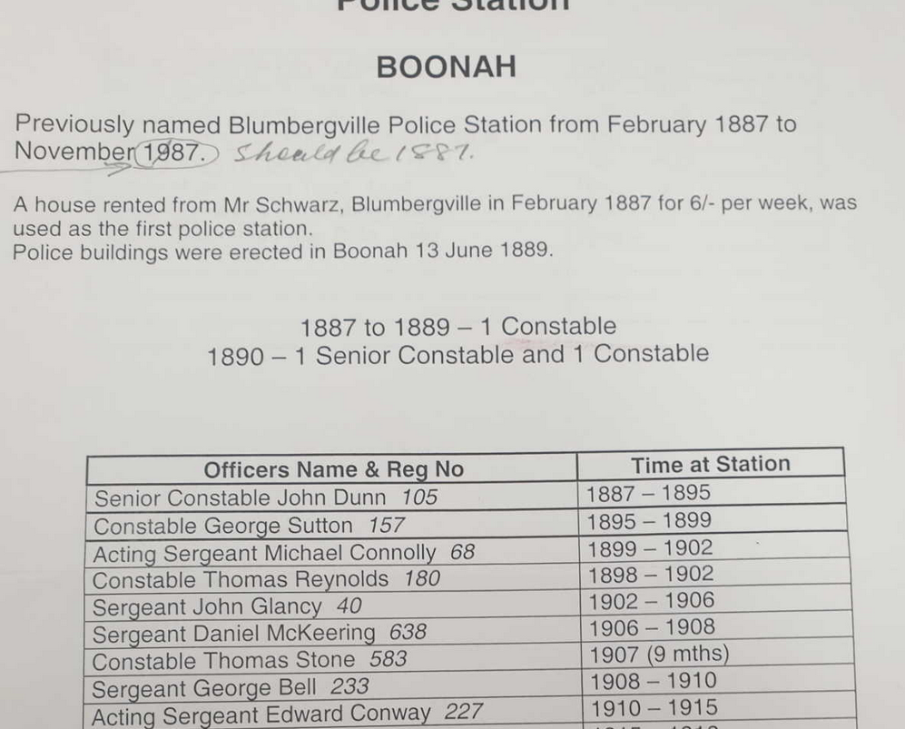 Senior Constable John Dunn Jnr was assigned to be the first police officer stationed in Boonah in 1887. Edward followed his half-brother to Boonah shortly afterwards in early 1888.