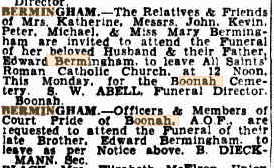 Reflecting on my own childhood, I cannot recall ever hearing my great-grandfather Peter Bermingham’s name mentioned. I didn’t even know of his existance until my later interest in family history began.