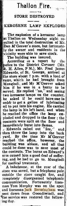 Jack got a small mention in the St George newspaper after an incident at Thallon, south west Queensland in 1932.