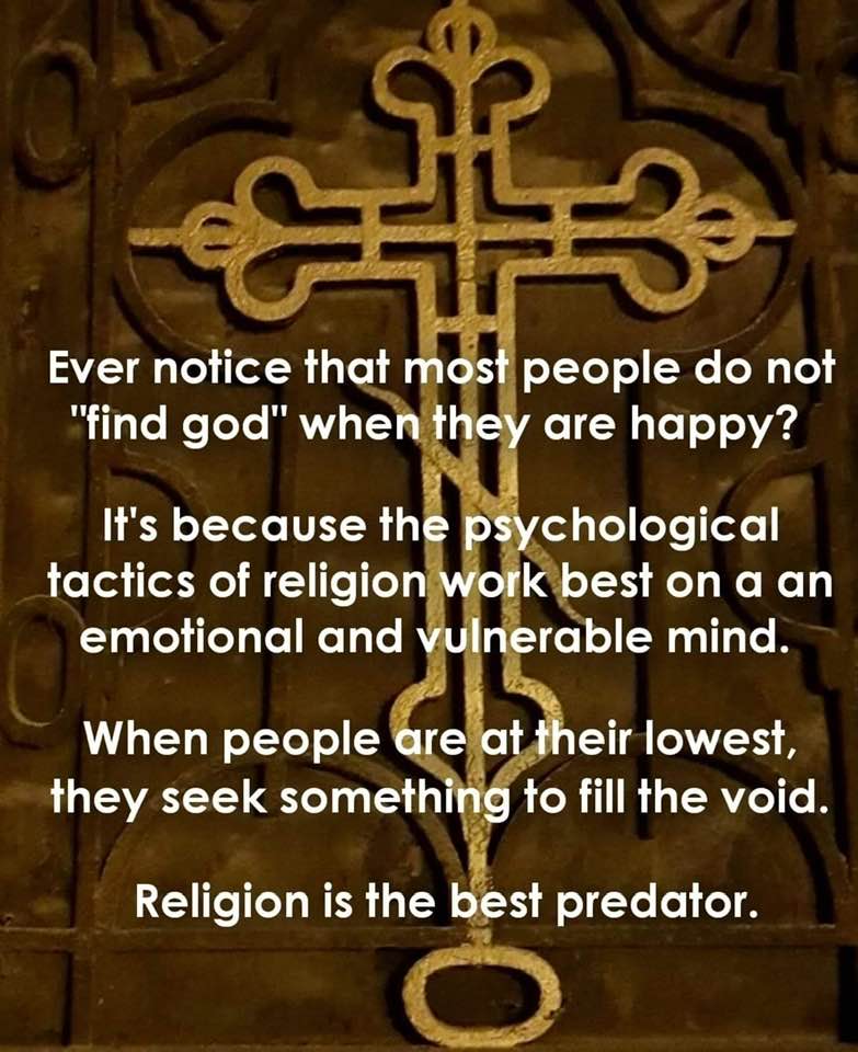 “Why do people rely on the crutch of religion throughout their lives—whether it’s for making decisions, justifying actions that hurt others, committing what they believe are minor crimes, or simply asking for guidance from their almighty god? Can’t they just be adults, think for themselves & do what is generally accepted as the right thing? And when things inevitably go wrong, why do they return to God and church to confess their failings, only to repeat the same cycle on this endless quest for answers?”