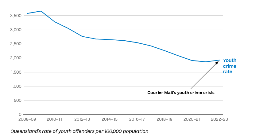 The Murdoch media through its local newspaper The Courier Mail has claimed that Queensland’s youth crime rates have skyrocketed to crisis levels. Maybe I’m struggling to correctly read the actual figures from these graphs collated by the State Government statiticians.