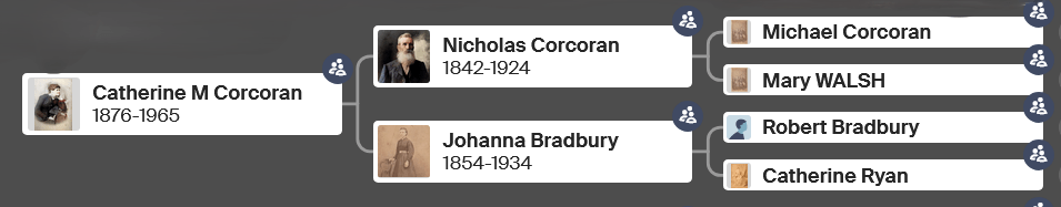 Catherine Mary Corcoran, born 20 November 1876, died 5 February 1965.