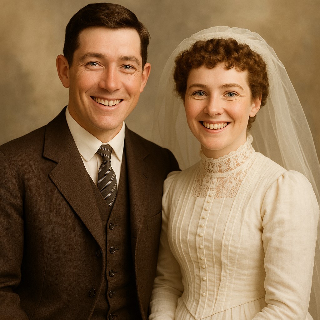 Using the earliest original photograph I have of her (at the head of the article) is one that I’ve digitally enhanced using AI. I see a young woman with the hopeful expression typical of her time. She was an attractive girl with the same dreams and expectations most young women had back then. Raised in a loving home in the beautiful Fassifern Valley, she would have received a basic early education, enjoyed life on the family farm, and had a well-balanced childhood. In much the same way as modern-day girls contemplate their futures & who their partners may be, I’m sure she dreamed of marrying a local farmer, merchant, or tradesman, and of raising her own family in circumstances similar to her own upbringing.