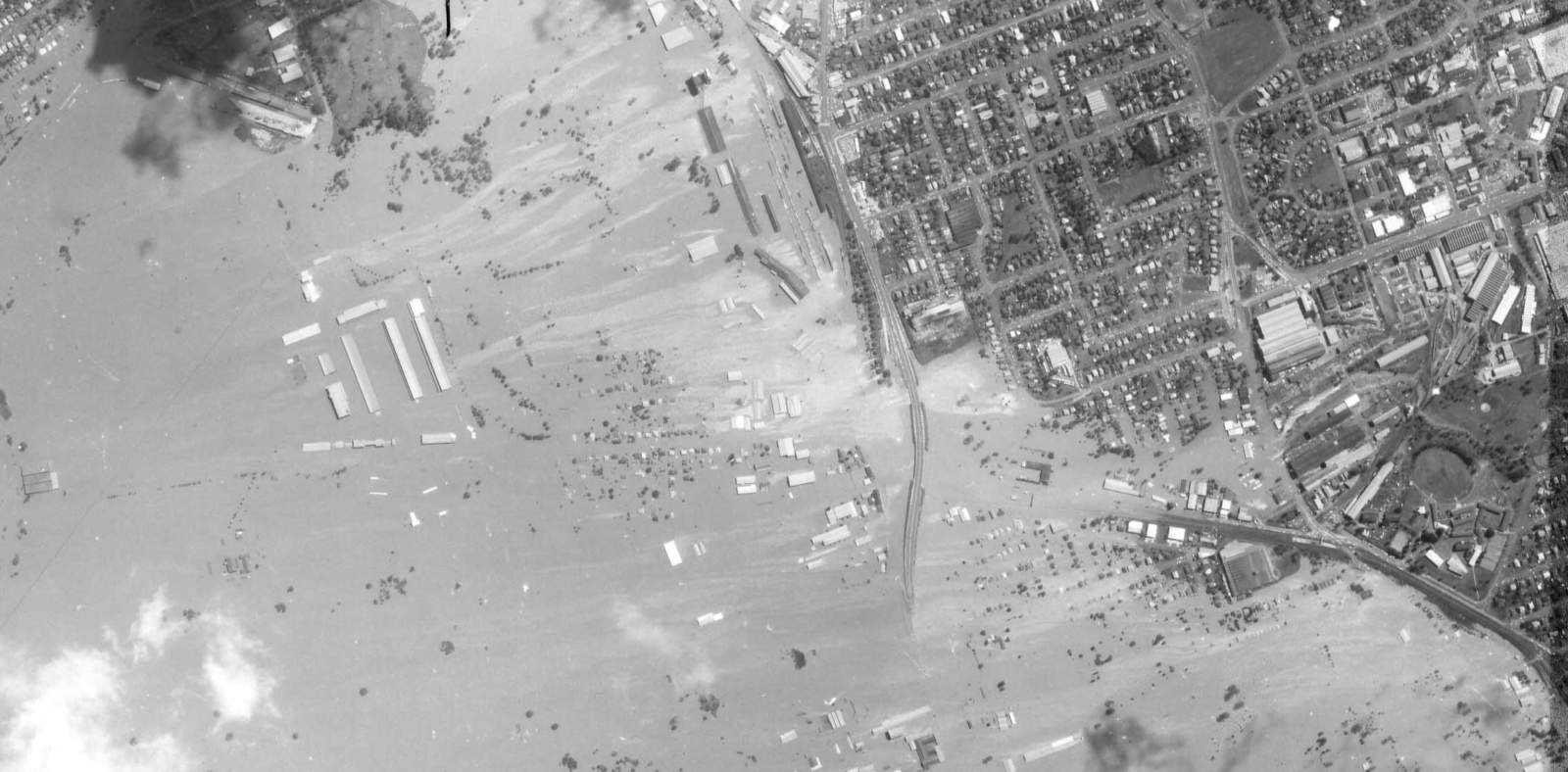 Looking down Melbourne Street Rocklea on Saturday 26 January 1974. Our family home closest in the photograph & all the others completely disappeared under the rising floodwaters