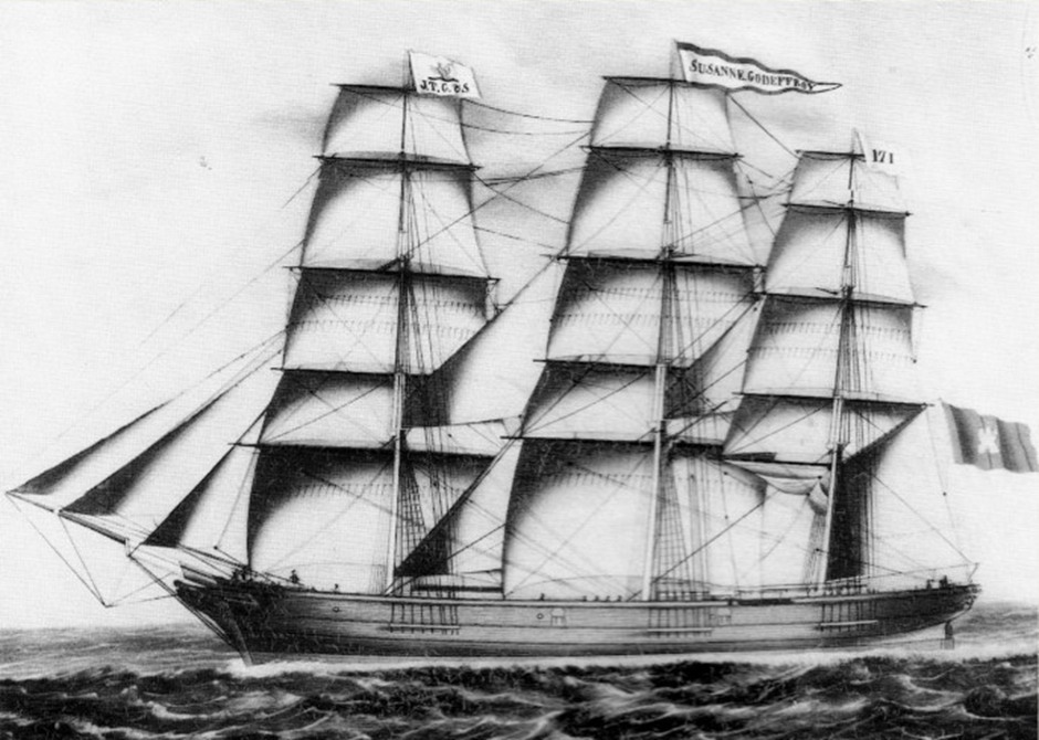 The ship struck some heavy weather on the way to Australia, which was fairly normal for most of the ships coming here. They sustained damages to the main mast that extended their time at sea, but still made it to Australia in 98 days. Its sister ship Wilhelmsburg had been lost on the journey with the loss of 282 lives, including 209 single men. After arriving at Cape Moreton the Susanne Goddefroy was boarded by Pilot Cooper, at 7.30pm, Sunday the 17th January 1864. She rounded the Cape and was brought up in the Roadstead off the bar the following day. The family arrived at Moreton Bay on the afternoon of the 18th January 1864. Of the 369 people on board, eleven children and one adult had died on the voyage from Germany.