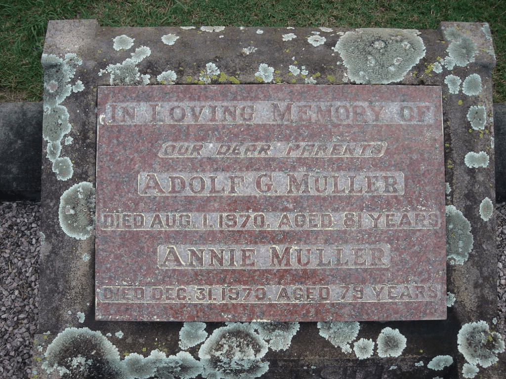 Alf Muller died on the 1st of August 1970 at eighty one years old & was accorded a State Funeral upon his death. He was buried in the Kalbar Cemetery. My Grandmother Annie died five months later and is buried beside him at Kalbar.