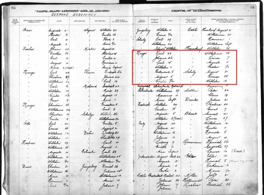 Siblings – Emma Ernstine* – 1877, Johan Ludwig-1878, Bertha Johanna-1880, Michael-1882 & Alfred Edwin-1886 were born at Fassifern.