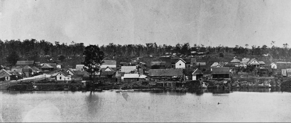 Brisbane 1863. Raff’s Wharf left of shot on river bank where Eagle St Pier is now located.