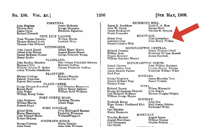 1895 Electoral rollQueensland PO Directory (Wise) 1903