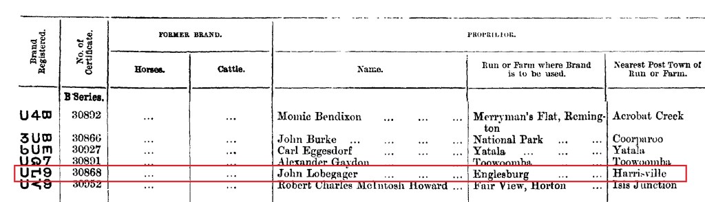 Sometime prior to 1906 Johannes had purchased the 160 acre portion 70V and the adjoining 624 acre portion 89V in the parish of Clumber which is located near Lake Moogerah Road.