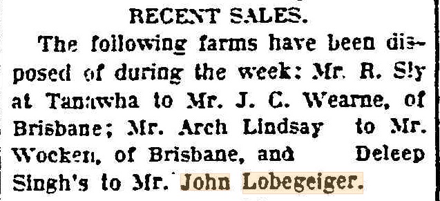 Queensland Times, Ipswich Herald and General Advertiser Thu 1 Feb 1906Queensland Times, Ipswich Herald and General Advertiser Tue 27 Feb 1906Queensland Times, Ipswich Herald and General Advertiser Thu 1 Mar 1906The Brisbane Courier Thu 23 Aug 1906The Telegraph Sat 15 Dec 19062023 Google maps view of portion 324 Fassifern Valley